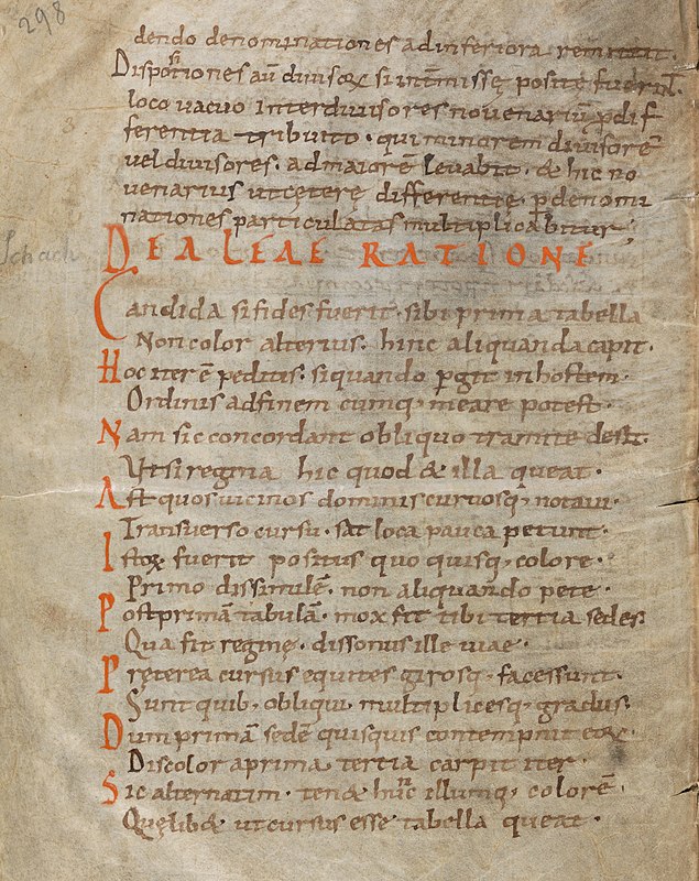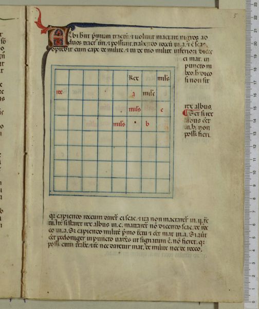 Civis Bononie, ciudadado de Bolonia. Este es el nombre que recibe la segunda de las grandes colecciones de problemas de ajedrez en la Edad Media. El nombre deriva de uno de los versos del poema que abre la colección: “Ciuis sum Bononie ista qui collegi”. El lenguaje utilizado en todos los manuscritos de la colección es el latín. El primero de ellos, “Tractatus de scacchis, de tabulis et de merellis”, conocido como R, se conserva en la Biblioteca Nazionale Centrale Vittorio Emanuele di Roma. Contiene 288 problemas de ajedrez y está datado en el primer cuarto del siglo XV. En la imagen el poema que abre el manuscrito con la bella capitular que lo inicia.
