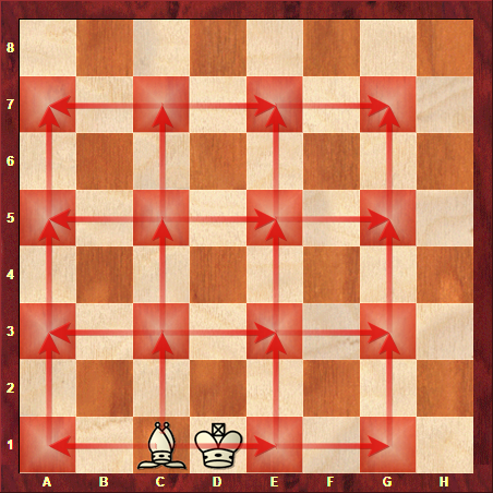 Vaya. ¿El Elefante mueve en línea recta? Nos encontramos entonces, con un posible intercambio de posición con la Torre y con tres tipos de movimientos posibles.