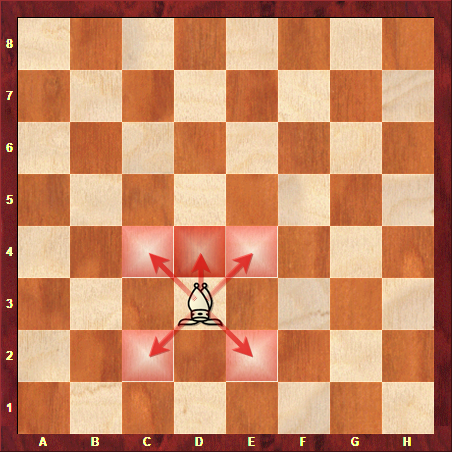 Alfil Indio de cuatro jugadores. Con el movimiento saltarín que ya conocemos. La posición de inicio es distinta, ya que en el juego de cuatro jugadores, solo habría un Alfil.