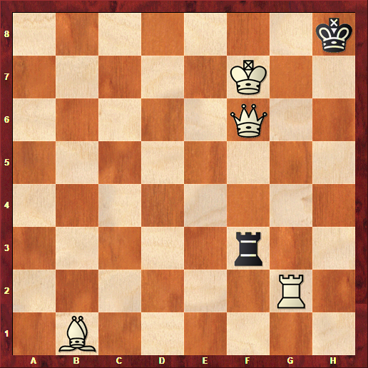 1.Th2+, Th3 2.Dg7+, Rh2 3. Ad3, Txh2 4.Af5++