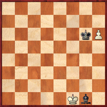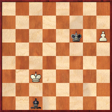 Para ejemplo de cómo funcionaba el juego con el movimiento del Alfil vemos este final de Alfil frente a peón. Se trata del mansubat 39, que aparece en numerosas copias. Para su resolución hay que recordar la regla del Rey desnudo. Si un rey quedaba sin piezas perdía. Pero si en la siguiente jugada capturaba la última pieza del contrario se producía el empate.