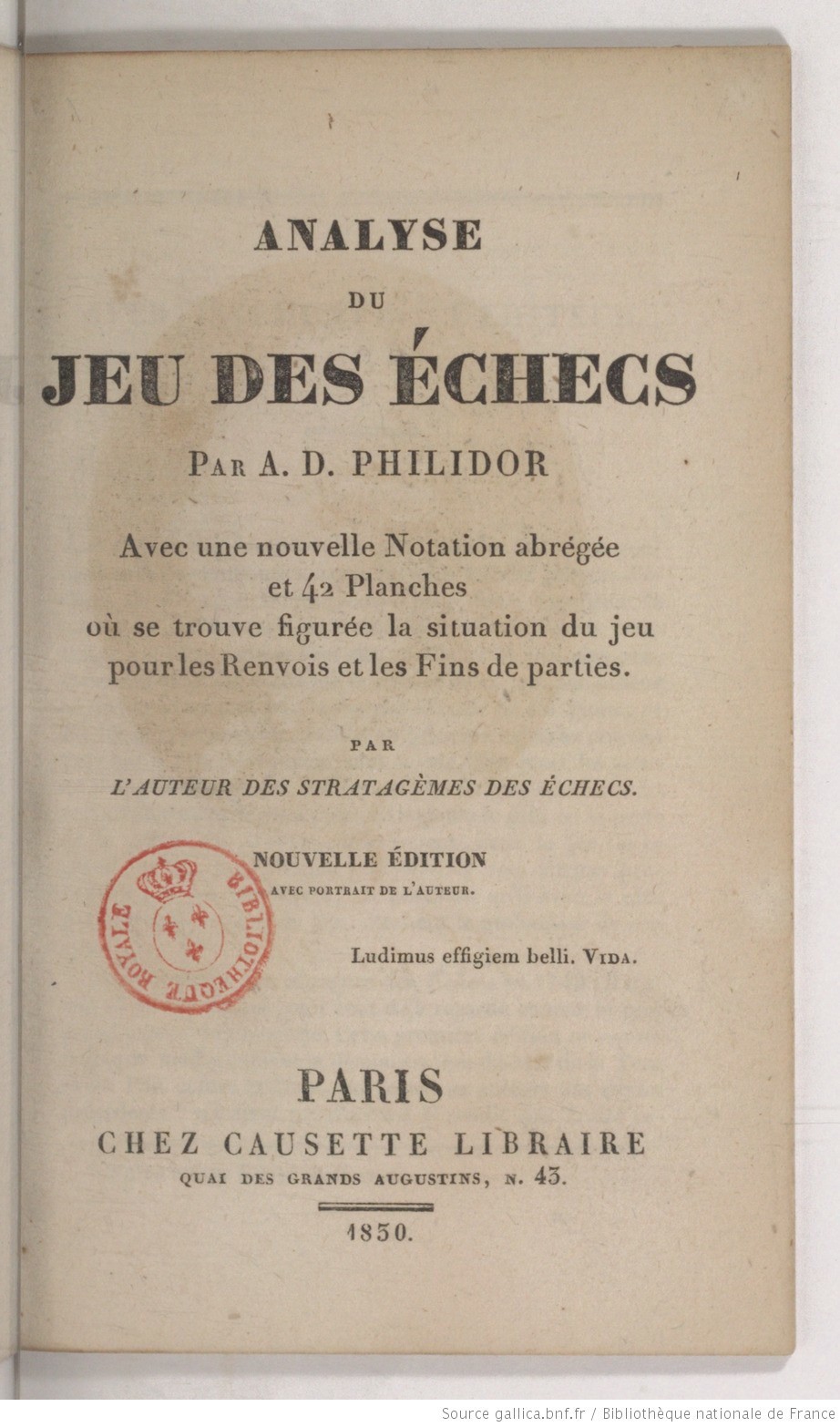 “Analyse du jeu des Échecs” F. D. Philidor Biblioteca nacional de España