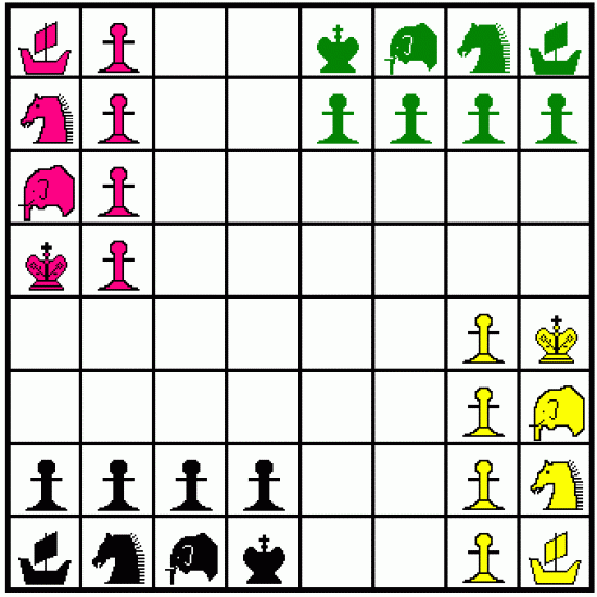 El juego podría tener dos modalidades: a cuatro jugadores y con dados (chaturaji) y el juego de dos jugadores sin dados (chaturanga).