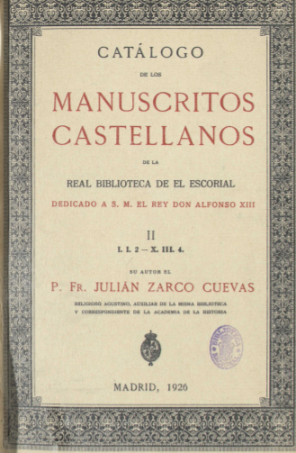 “Catálogo de manuscritos castellanos de la biblioteca de El Escorial, Madrid”, Julián Zarco. 1924- 1929; Tomo III. BNE
