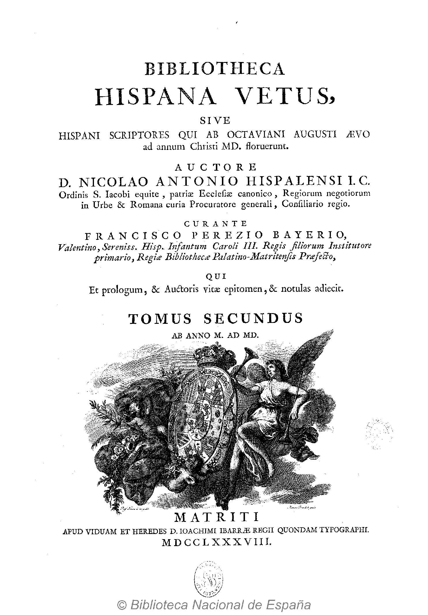 Bibliotheca Hispana Vetus. Nicolás Antonio. Edición revisada por Francisco Pérez Bayer. Tomo II. 1788 Biblioteca Nacional de España
