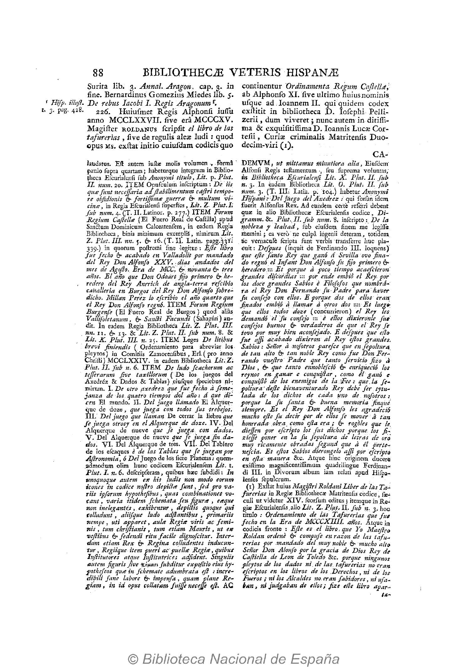 - 1788 “Bibliotheca Hispana Vetus”. Nicolás Antonio Edición revisada por Francisco Pérez Bayer. Tomo II. Biblioteca Nacional de España