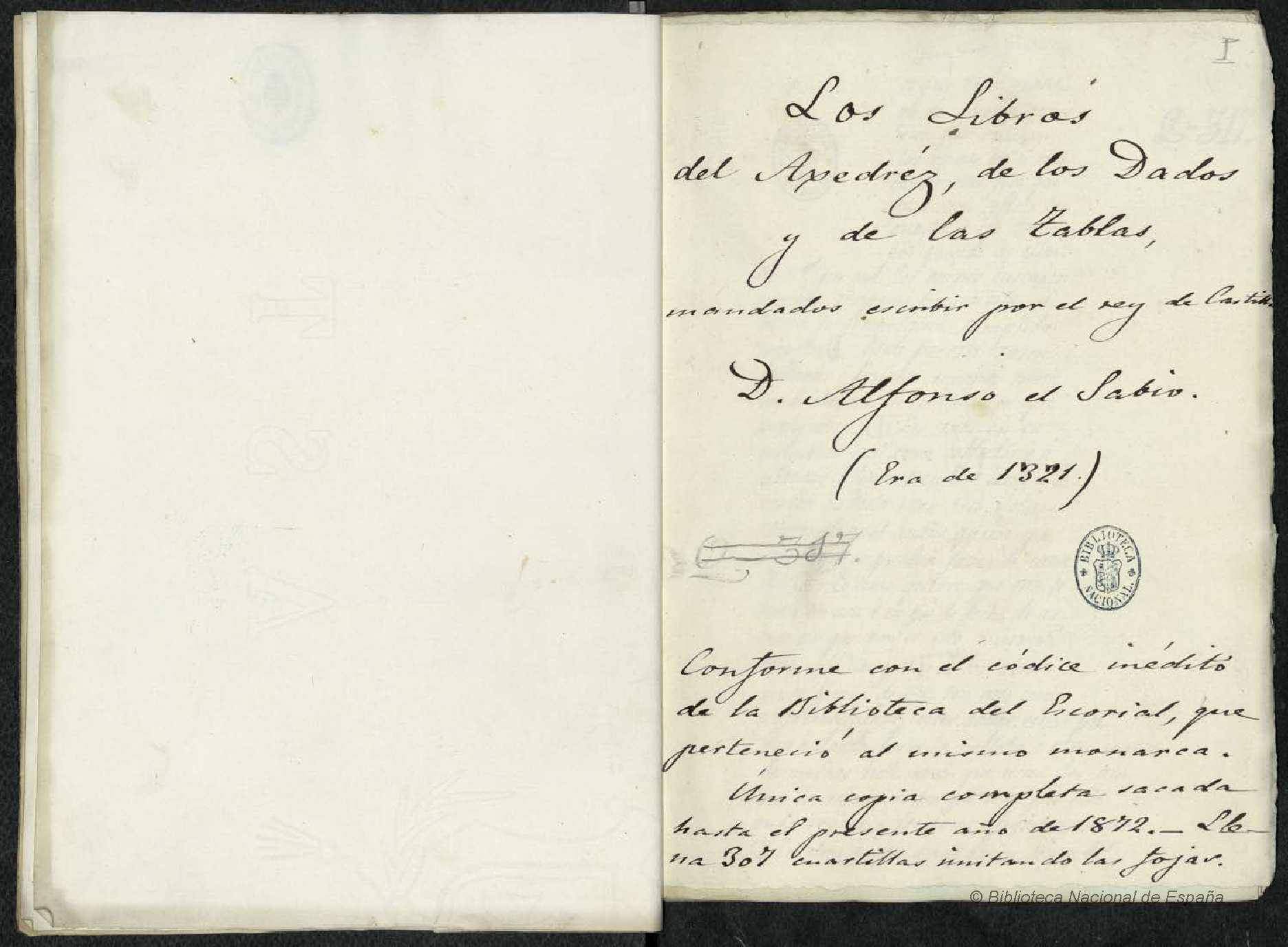 Con este mismo fin mandó trabajar en Castellano el Rey D. Alonso el Sabio una obra completa de este juego,… que está MS. en la Real Biblioteca del Monasterio de S. Lorenzo del Escorial.”