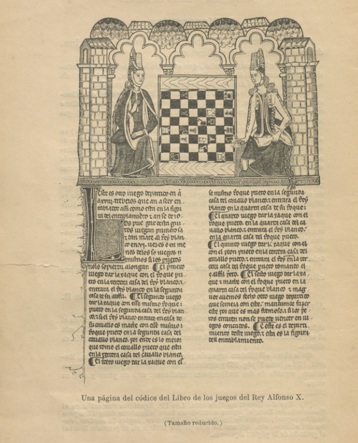 Existen pocos documentos anteriores al siglo XIX en los que se referencie el Libro de los Juegos (1283) “mandado facer” por el rey D. Alfonso X, que se encuentra en la Real Biblioteca del Monasterio de El Escorial. Ni tenemos conocimiento de que fuese conocido por los historiadores de ajedrez hasta finales del siglo XIX.