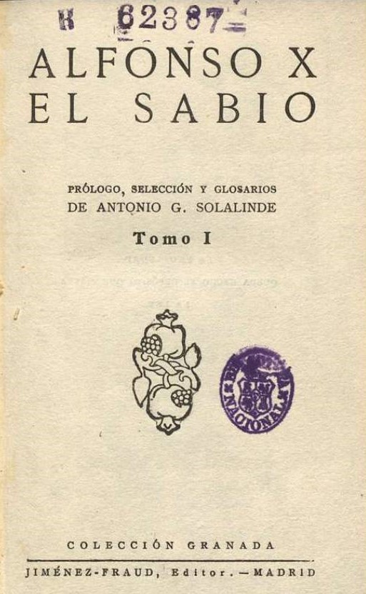 - 1922 “Alfonso X, el Sabio, prólogo y selección de glosarios” Antonio G Solalinde. Biblioteca Nacional de España