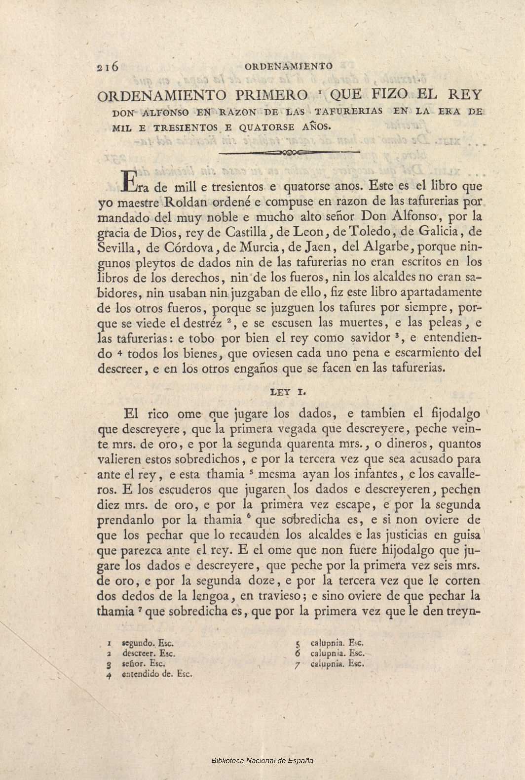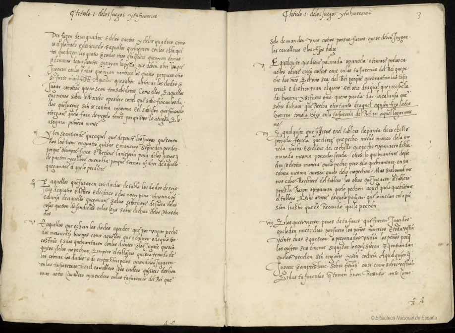 “Ordenamiento del juego de los dados de Alfonso X o Libro de las tafurerías, compuesto por orden suya por el maestro Roldán”. BNE. Biblioteca Digital Hispánica.