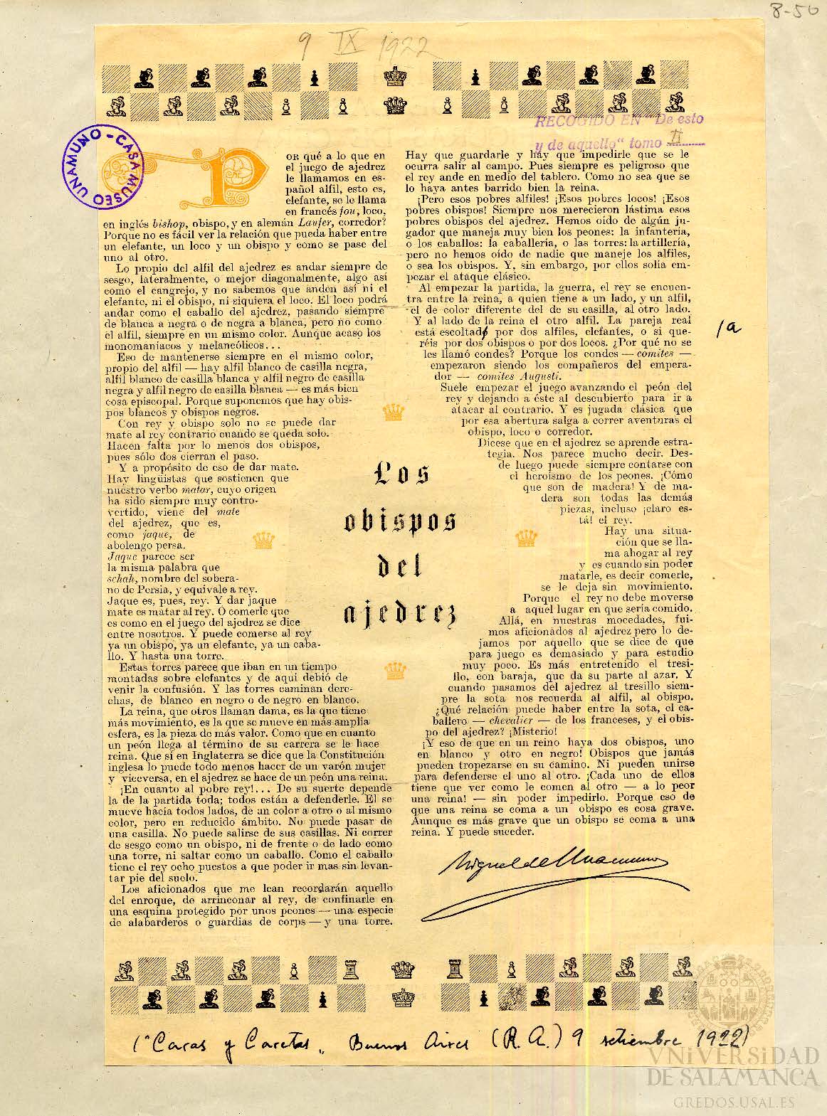 Los obispos del ajedrez. Miguel de Unamuno