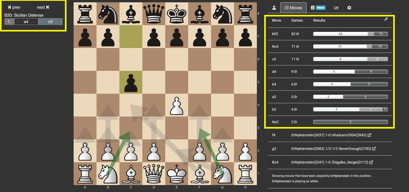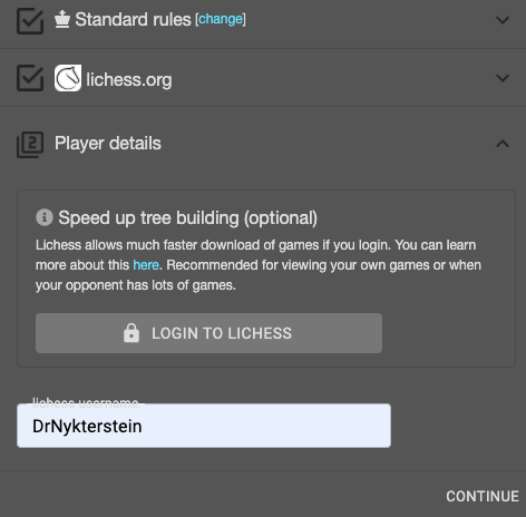 En este caso vamos a suponer que nos enfrentamos a "DrNykterstein" (Magnus Carlsen) , debemos dar a Continue y esperar a que nos genere el arbol de variantes que juega nuestro rival.