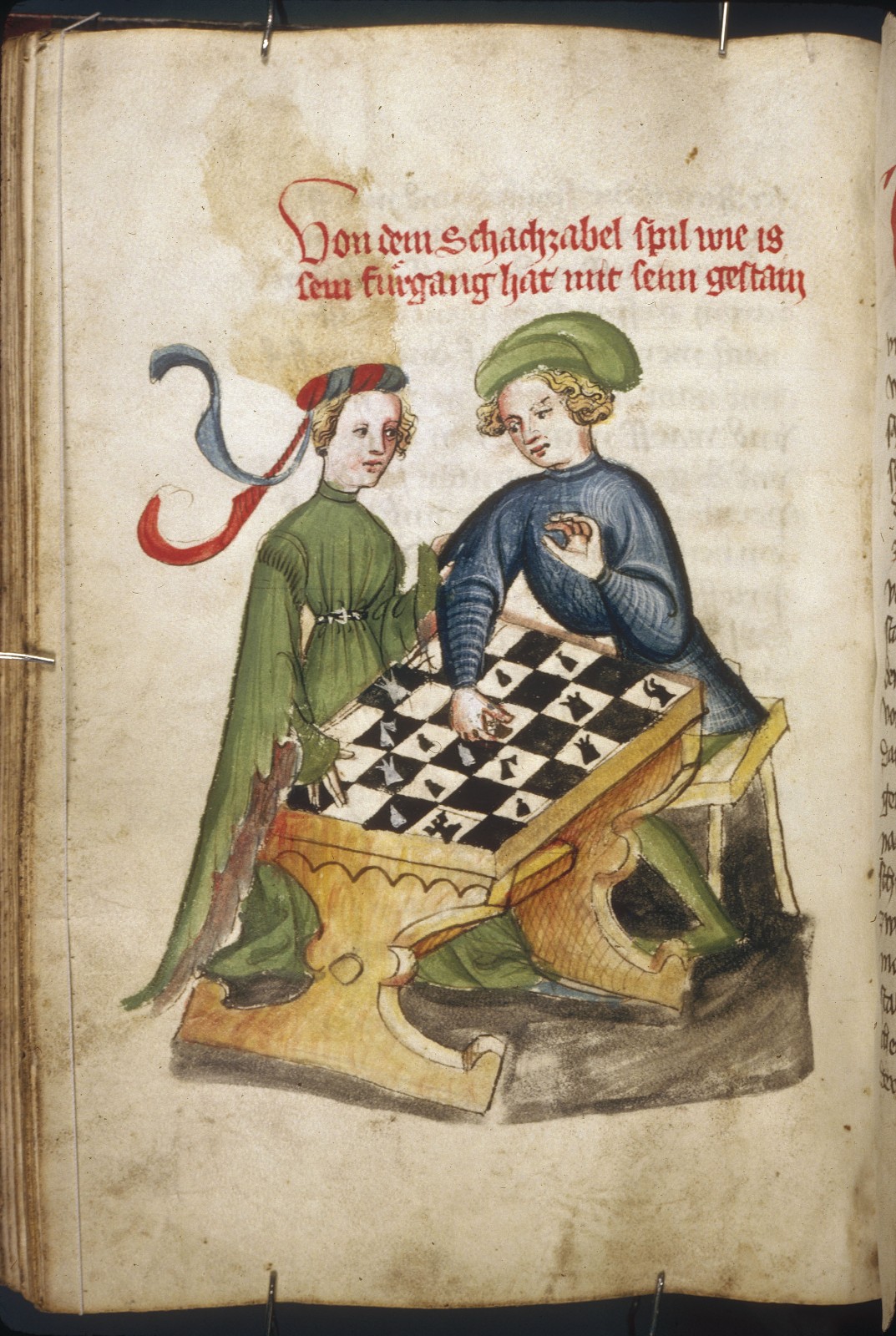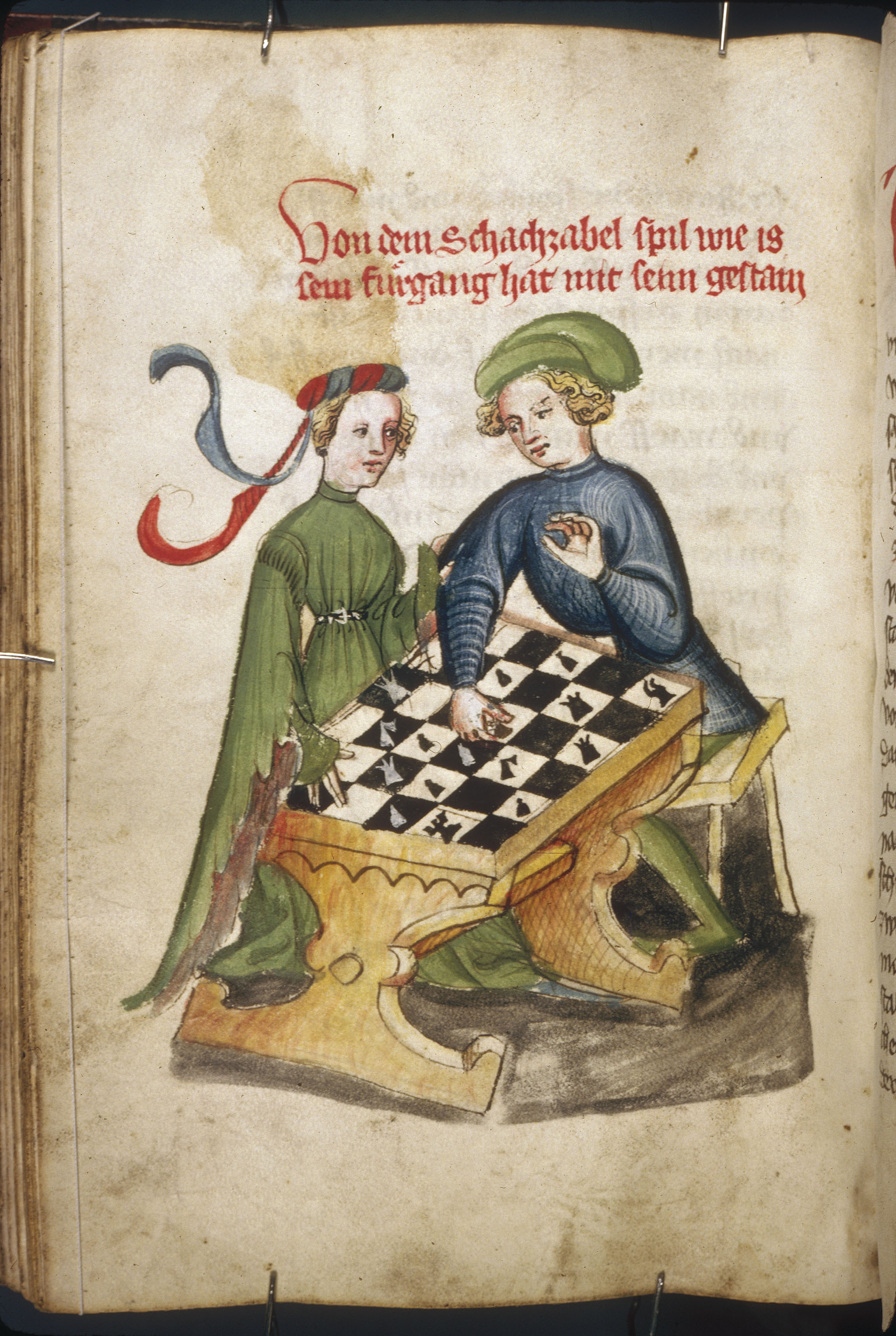 Copia de una de las traducciones alemanas del "Ludo sccachorum" de Cessolis. Peretenece a la Universidad de Harvard y está datada en 1390-1410. Comprado en 1833 por Silas W. Howland de Gilhofer & Ranschburg, fue donado a la Universidad en 1938.