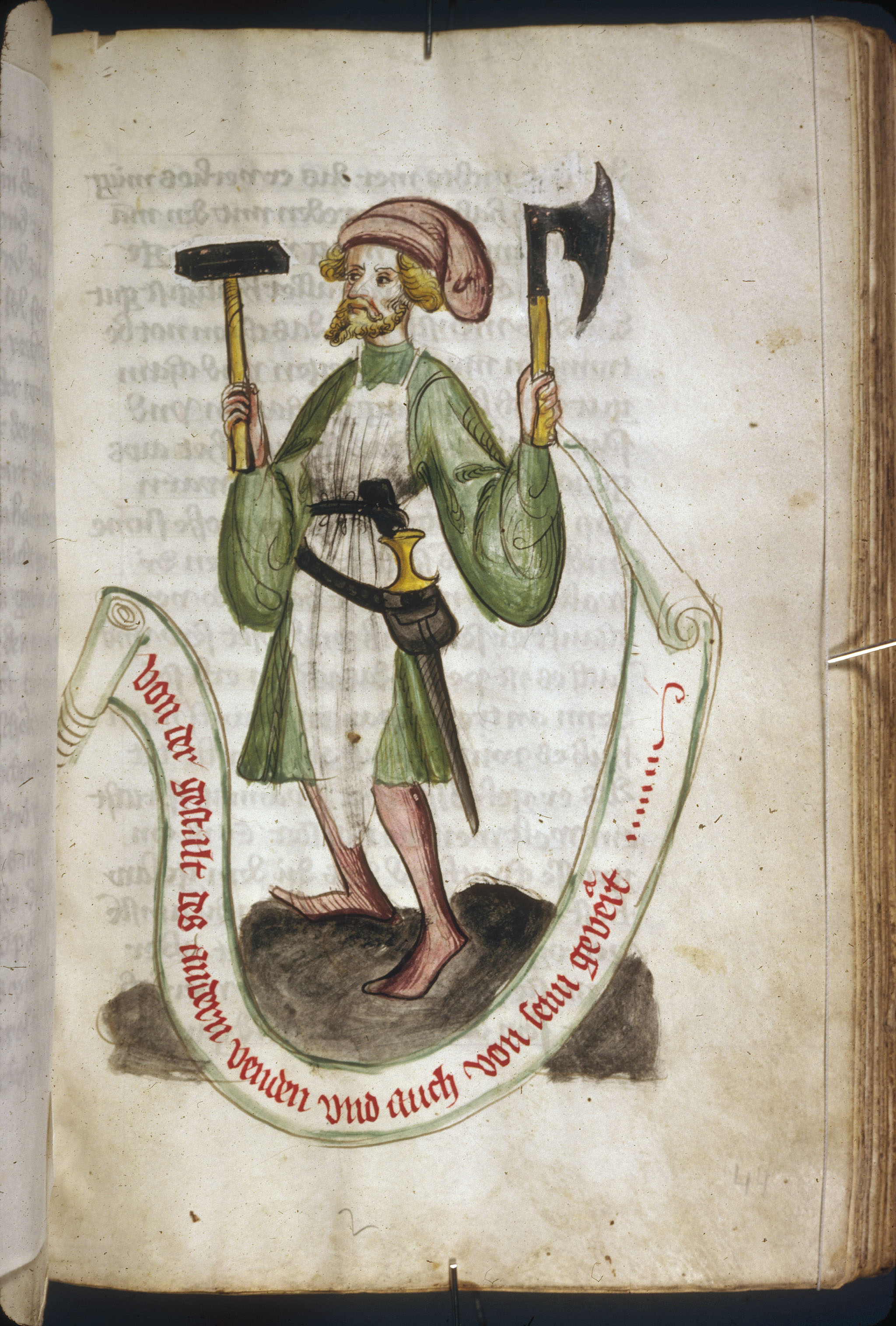 Campesino con azadón y tallo. Hombre con martillo y hacha.