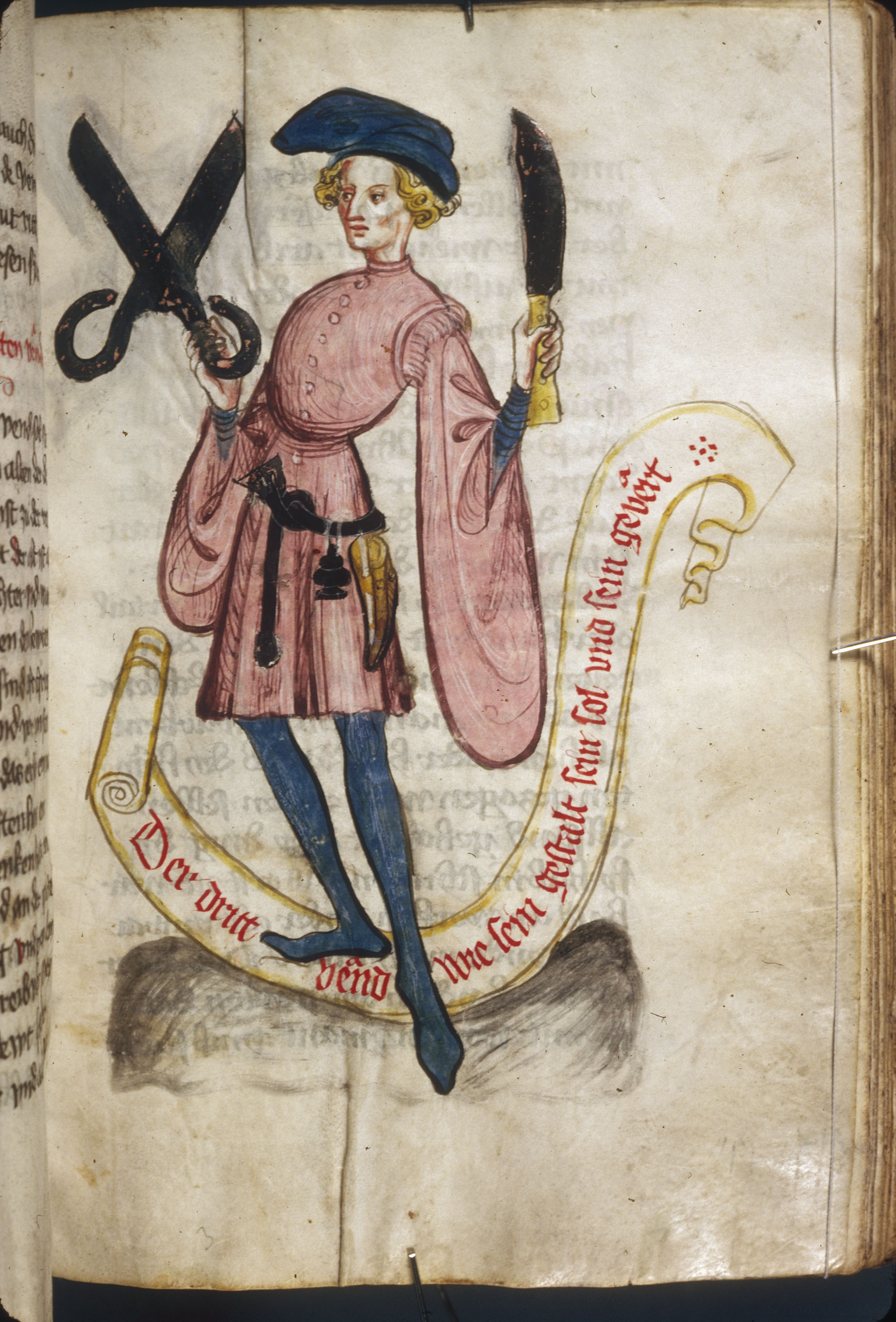 Hombre con cuchillo y tijeras. Cambiador de dinero